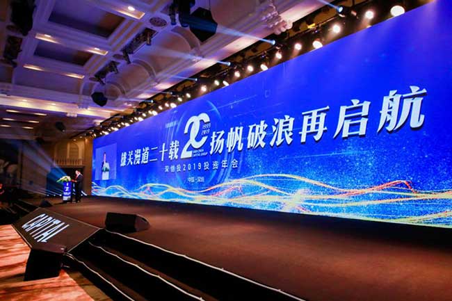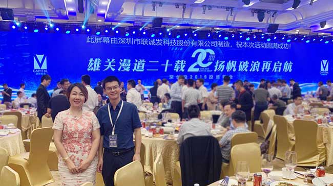 2019年8月25日,深创投2019年投资年会在深圳市华侨城洲际大酒店拉开了序幕,而星空游戏作为被投资企业及LED显示屏解决方案服务商出席此次投资年会,星空游戏200㎡的龙艺LED显示大屏幕更是为本次年会提供了极致的显示效果,优质的解决方案和产品得到了深创投的十分肯定。