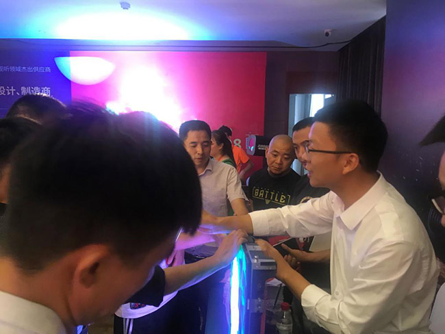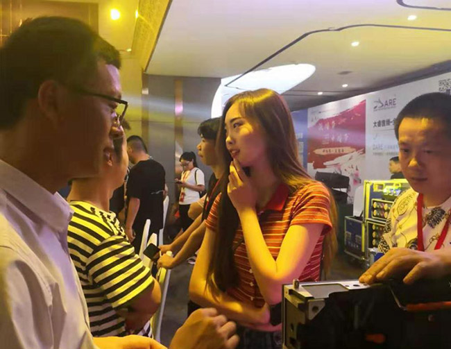2019年7月14日,星空游戏代表团队来到了成都武侯区智汇堂枫泽大酒店,今天这里将有一场盛大的舞美租赁行业干货分享盛会,行业内的大咖都聚集于此。在会议开始前,星空游戏工作人员早早来到现场精心的把展位布置好,就在工作人员刚刚把星空游戏LED显示屏产品龙艺装置好的时候,就吸引来了观众的瞩目,可见龙艺的魅力之大,不愧为“天生为舞台而生!”的称号!