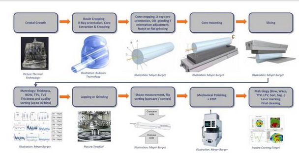 蓝宝石晶片制造流程: