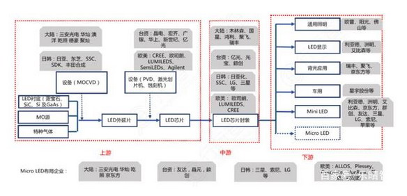 LED产业链及主要公司: