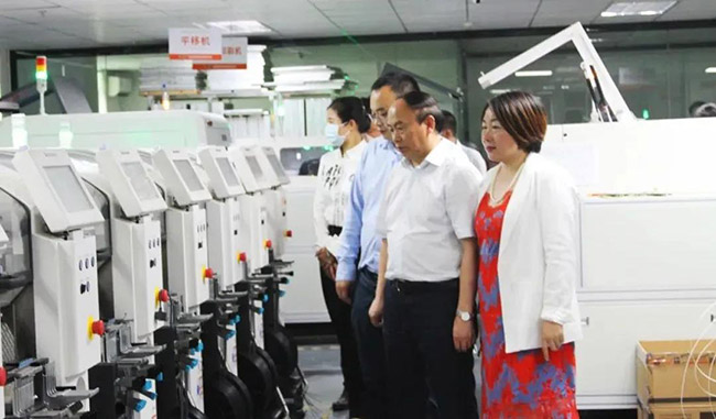 王清平区长一行深入生产车间,认真观摩智能化生产车间、公司产品,对星空游戏LED不同的产品造型、特性有了更直观的了解。“十五年的发展壮大证明了你们企业的成功,值得很多制造业的关注和学习。”王清平区长高度赞扬星空游戏所取得的成绩。